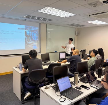 A complete knowledge-transfer program: intensive hands-on training workshops followed by expert guidance on your first automation projects, delivering a permanently independent in-house capability